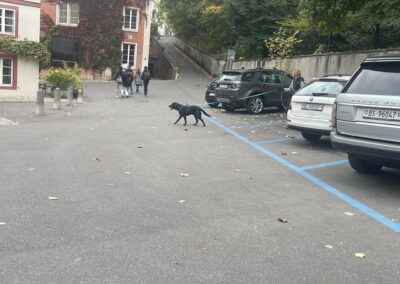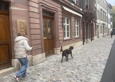 Drüben bei Beat angekommen, merkte ich wieso er mir geschrieben hatte. Nr 6. war gar nie bei ihm angekommen. Er erzählte mir seine Sicht der Dinge. Auch er wurde immer unterhalten, sah jemand den er kannte oder redete mit den Hundebesitzer. Auch fremde Hunde hatten ihn begrüsst. Nur Lua wollte ihn partout nicht anzeigen, obwohl sie auf der andere Rheinseite so schön getrailt hatte. Drüben, endlich in der Wärme fragte ich dann die zwei Trailer was den geschehen sei, dass Nr. 6 nicht ankam. Die Hundedame sei einfach auf die andere Seite und hätte dort jemanden angezeigt, der sich sehr darüber gefreut hat. Nr. 5 dachte sich, ich hätte die Versteckperson geänderet. Gibts nicht, gibst nicht. Jetzt als sie jedoch Beat sah, freute sie sich riesig, endlich das richtige Ziel erreicht. Alle wurden belohnt. Ausser Beat, der musste eingefroren wie er war einen Coupe Dänemark essen, Kuchen gab es nicht. Ich fragte meine Kunden aus, wie es so war, auf der anderen Seite, so ganz alleine. Sie sagten alle etwa da ähnliche. Sie gingen mit den Fahrgästen die Treppe hoch und oben war dann eine Traube voller Leute was die Hunde etwas überforderte. Einige gingen wieder runter und gaben den Geruch nochmals, sehr gut. Andere öffneten auch Mal das Lösungscouvert. Man muss sich selbst zu helfen wissen.