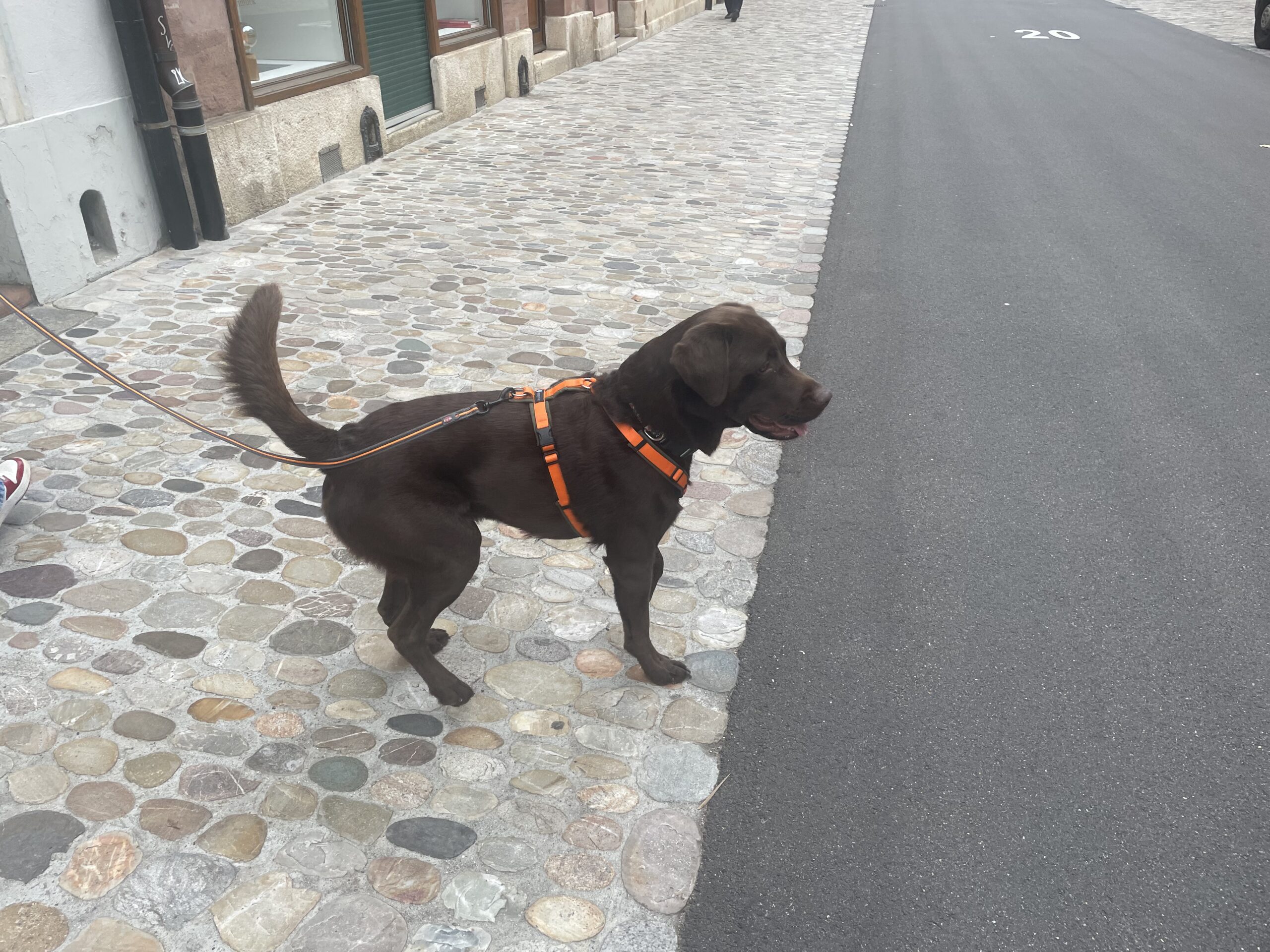 Drüben bei Beat angekommen, merkte ich wieso er mir geschrieben hatte. Nr 6. war gar nie bei ihm angekommen. Er erzählte mir seine Sicht der Dinge. Auch er wurde immer unterhalten, sah jemand den er kannte oder redete mit den Hundebesitzer. Auch fremde Hunde hatten ihn begrüsst. Nur Lua wollte ihn partout nicht anzeigen, obwohl sie auf der andere Rheinseite so schön getrailt hatte. Drüben, endlich in der Wärme fragte ich dann die zwei Trailer was den geschehen sei, dass Nr. 6 nicht ankam. Die Hundedame sei einfach auf die andere Seite und hätte dort jemanden angezeigt, der sich sehr darüber gefreut hat. Nr. 5 dachte sich, ich hätte die Versteckperson geänderet. Gibts nicht, gibst nicht. Jetzt als sie jedoch Beat sah, freute sie sich riesig, endlich das richtige Ziel erreicht. Alle wurden belohnt. Ausser Beat, der musste eingefroren wie er war einen Coupe Dänemark essen, Kuchen gab es nicht. Ich fragte meine Kunden aus, wie es so war, auf der anderen Seite, so ganz alleine. Sie sagten alle etwa da ähnliche. Sie gingen mit den Fahrgästen die Treppe hoch und oben war dann eine Traube voller Leute was die Hunde etwas überforderte. Einige gingen wieder runter und gaben den Geruch nochmals, sehr gut. Andere öffneten auch Mal das Lösungscouvert. Man muss sich selbst zu helfen wissen.